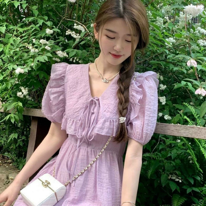 Đầm cổ bèo cột nơ cổ , đầm dự tiệc cúp ngực có mút ôm eo quyến rũ sang trọng.