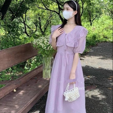 Tên sản phẩm: Đầm Cổ Bèo Cột Nơ Cổ – Haka Mây