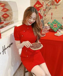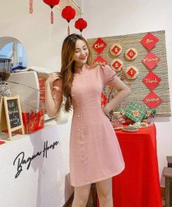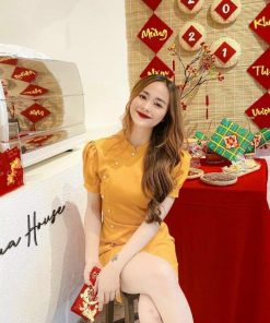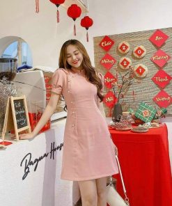 Tên sản phẩm: ĐẦM CỔ TÀU TAY PHỒNG DÁNG CHỮ A ĐÓNG CƯỜM V240