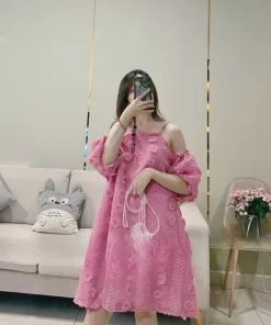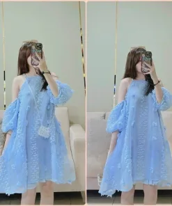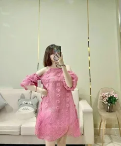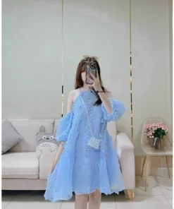 - Kiểu dáng đầm xòe cổ yếm bánh bèo, dễ thương.