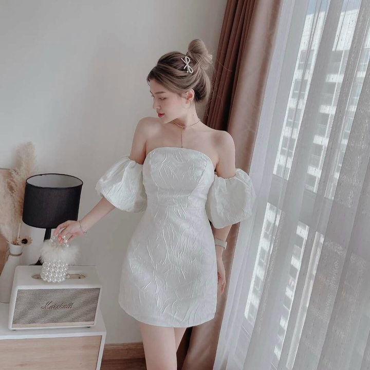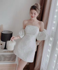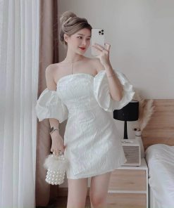 Tên sản phẩm: Đầm cúp ngực tay phồng có mút V195 – HAKA MÂY