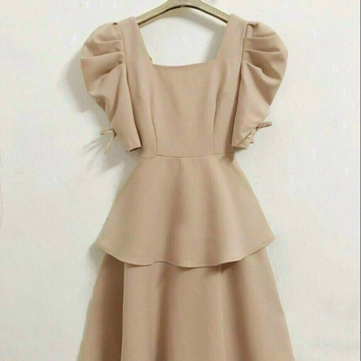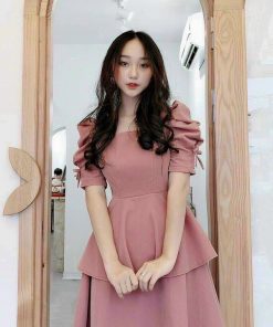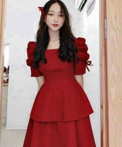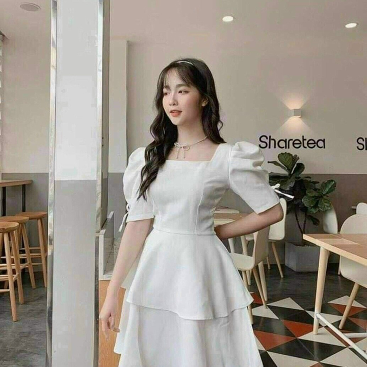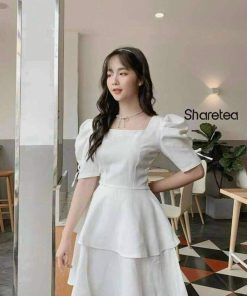 Tên sản phẩm: ĐẦM DẠ HỘI TAY RÚT DÂY HAI TẦNG ĐANG XÒE CỔ VUÔNG CHẤT FOR V153 – CLOUDY DRESS