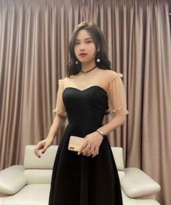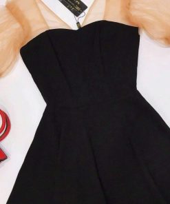 Đầm dáng xoè phối voan đen ngắn sang chảnh V135