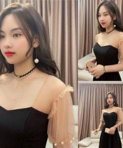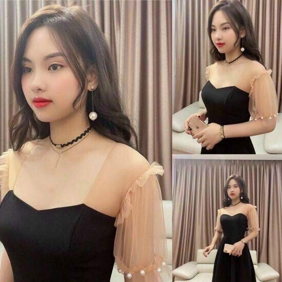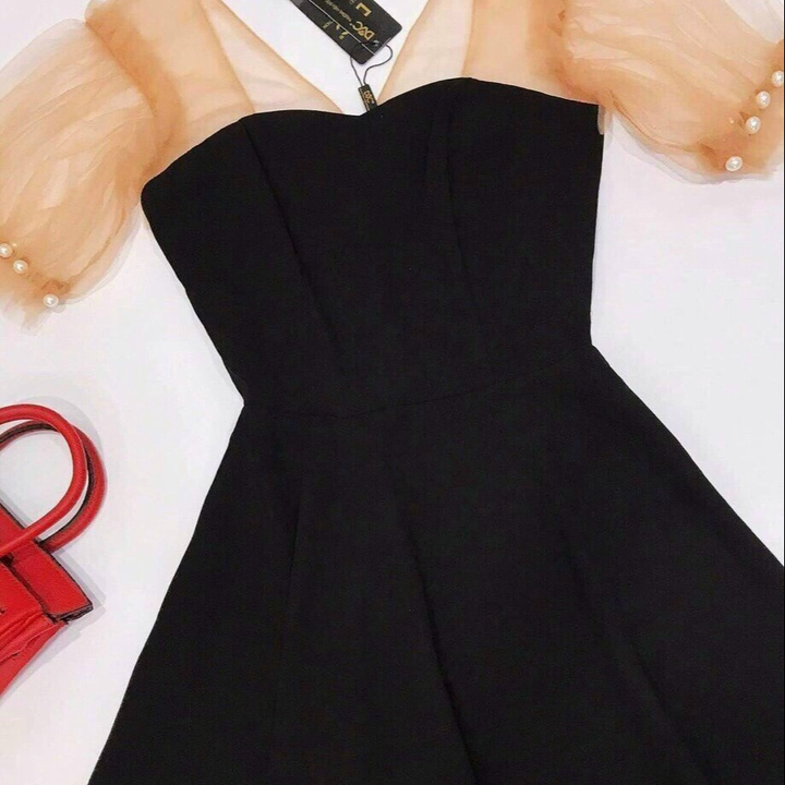 + Mô tả sản Phẩm: Đầm dáng xoè phối voan đen ngắn sang chảnh V135