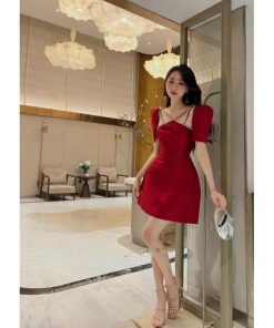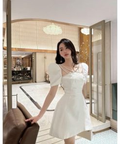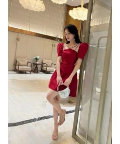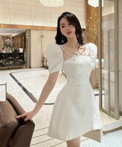 Với thiết kế cơ bản từ đầm xòe, qua cách điệu phần cổ vuông phối dây chéo đính đá tạo nên một tác phẩm thời trang cao cấp, cuốn hút…Mẫu đầm lên form dáng đẹp lắm ạ!
