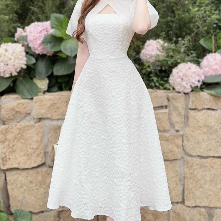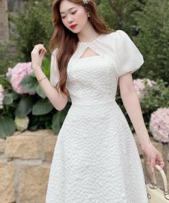 Tên sản phẩm: ĐẦM GẤM XỐP TAY VOAN ĐÍNH CƯỜM (CÓ MÚT) V977H – AINE
