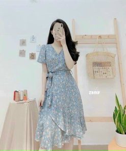 Tên sản phẩm: Đầm hoa nhí cổ chéo buộc nơ bên hông eo dáng xòe hai tầng V109 – CLOUDY DRESS