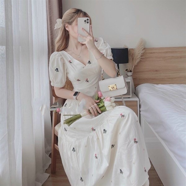 Tên sản phẩm: Đầm hoa nhí cổ chữ V dáng xoè V54 – CLOUDY DRESS