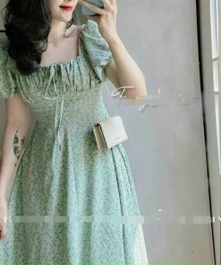 Tên sản phẩm: Đầm hoa nhí lụa cột nơ ôm eo dáng xòe nữ tính V100 – CLOUDY DRESS