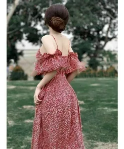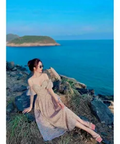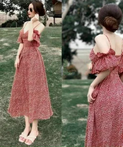 Tên sản phẩm: ĐẦM HOA TRỄ VAI DÁNG DÀI XÒE ĐI TIỆC M289