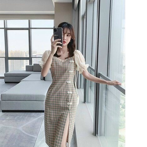 Tên sản phẩm: đầm kate lụa đính nút kiểu hongkong V290 – CLOUDY DRESS