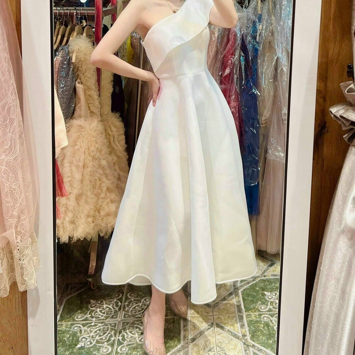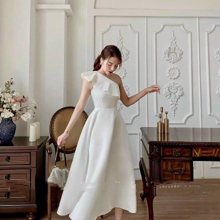 Tên sản phẩm: Đầm lệch vai dáng xòe trễ vai sang chảnh v165 – HAKA MÂY