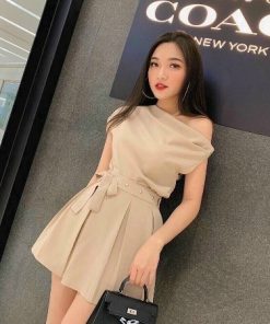 Tên sản phẩm: ĐẦM LỆCH VAI ĐÍNH CƯỜM CHIC EO SANG CHẢNH V136 – CLOUDY DRESS
