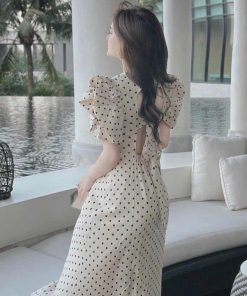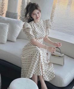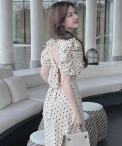 ĐẦM LỤA CHẤM BI CỘT DÂY NƠ BT73RE-SAM FREESIZE < 53KG