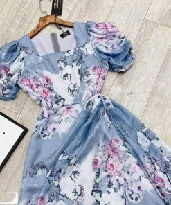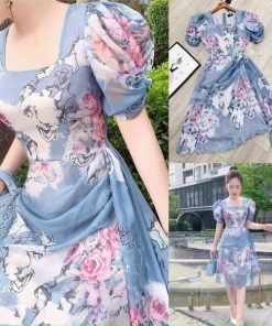 Tên sản phẩm: ĐẦM LỤA HOA ÔM EO TÔN DÁNG V349 – HAKA MÂY
