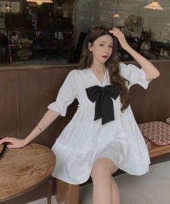 Tên sản phẩm: Đầm lụa dáng babydoll ngắn đính nơ V78 – CLOUDY DRESS