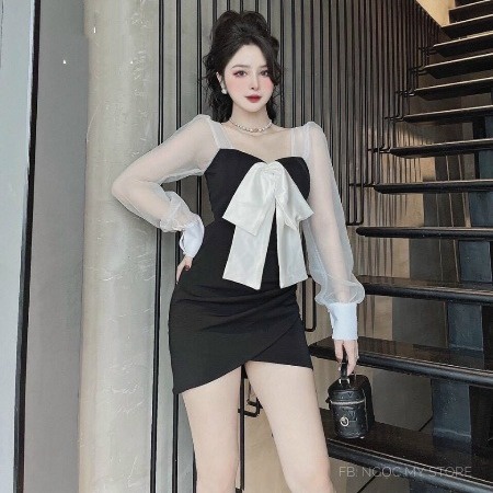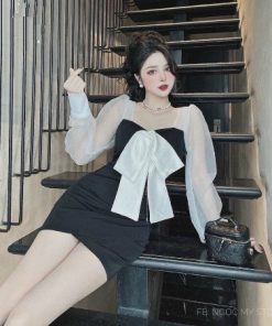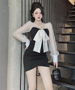 Tên sản phẩm: ĐẦM LỤA PHỐI LƯỚI KÈM NƠ V318 – CLOUDY DRESS