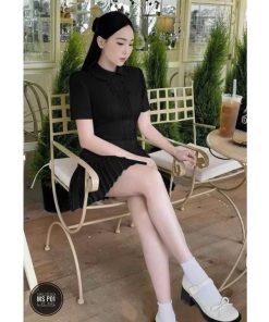 ĐẦM MANGO XẾP LY CỔ BẺ NÚT BỌC KÈM QUẦN RỜI BT95JH-NANA FREESIZE < 53KG