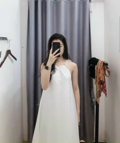 Đầm freesize cân nặng từ 40-65kg, chiều cao từ 1m45-1m75, 1m65 mặt tới mắc cá chân .