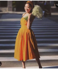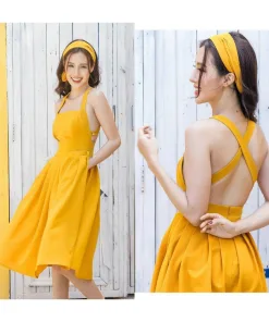 - Tên sản phẩm: Đầm Maxi Vàng Đan Lưng Cao Cấp – Vanass