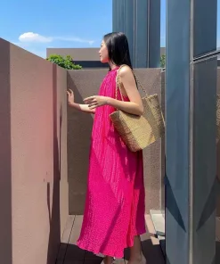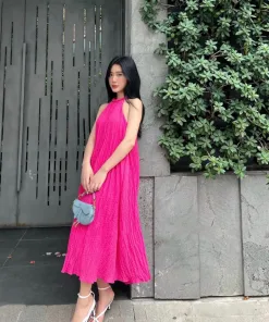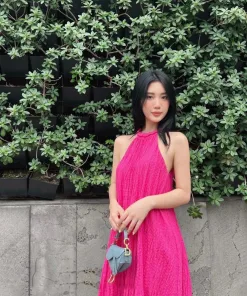 - Đầm maxxi dáng dài, được thiết kế cổ yếm, dây đan.