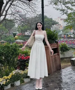 - Kiểu dáng: đầm xòe mocking sau lưng, chân váy dài 70cm