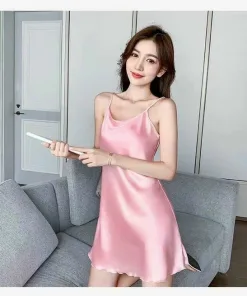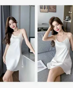 Váy Ngủ 2 Dây – Đầm Ngủ Dễ Thương dáng Suông, vải Lụa Satin Cao Cấp Mềm Mịn Thấm Hút Tốt, form dáng, đường kim mũi chỉ rất chuẩn và chất lượng wash cực tốt.