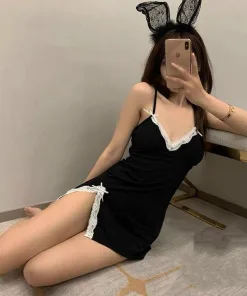 - Sản phẩm gồm đầm ngắn 2 dây phối ren kèm quần chíp cực sexy.