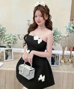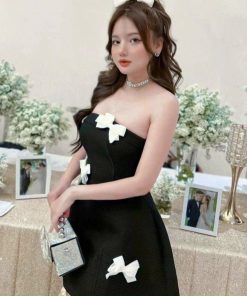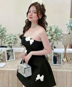 – Thiết kế đầm cúp xòe nhẹ, điểm nhấn là những chiếc nơ tinh tế 😍