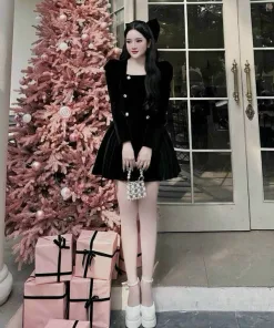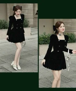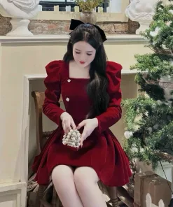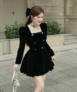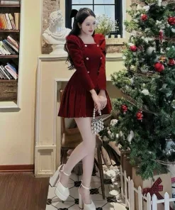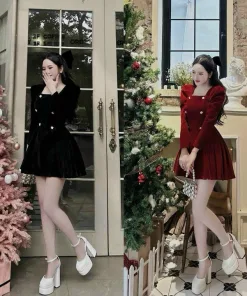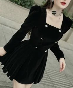 ĐẦM NHUNG CỨNG CỔ VUÔNG TAY XẾP LY TÙNG MÀU SH1957- SAM FREESIZE < 53KG