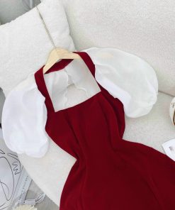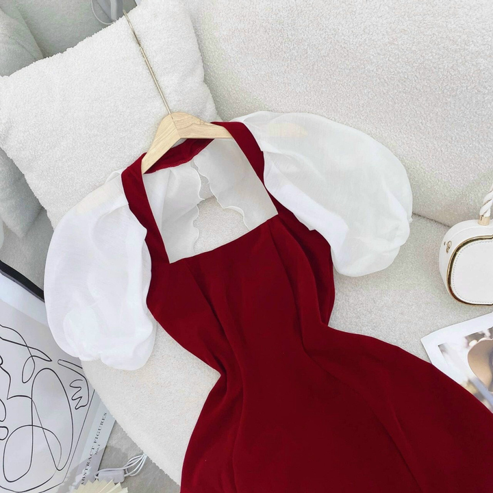 Tên sản phẩm: Đầm Nhung Xòe Dài Phối Tay Voan – CLOUDY DRESS