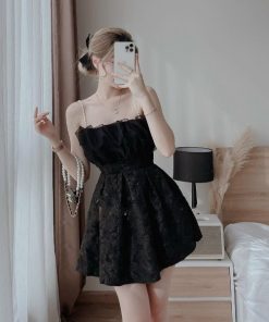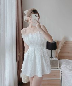 Tên sản phẩm: ĐẦM NỮ 2 DÂY CƯỜM XẾP LY CÚP NGỰC CÓ MÚT CHẤT XỐP PHỒNG HOA & VOAN KIẾNG T553