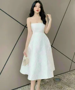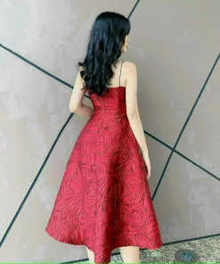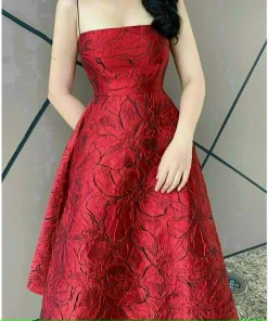 Tên sản phẩm: ĐẦM NỮ 2 DÂY CÚP NGỰC CÓ MÚT ÔM EO DÁNG XÒE DÀI CHẤT GẤM HOA T943