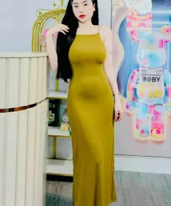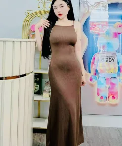 ĐẦM NỮ 2 DÂY ÔM BODY DÁNG DÀI XÒE CHẤT THUN GÂN DD600 – NANA FREESIZE < 58KG