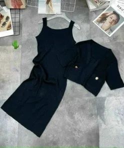 Tên sản phẩm: ĐẦM NỮ 2 DÂY ÔM BODY KÈM ÁO KHOÁC CHẤT THUN M834