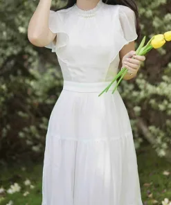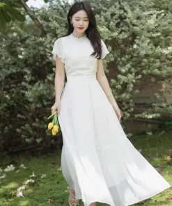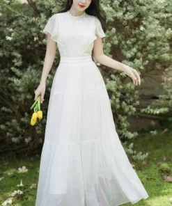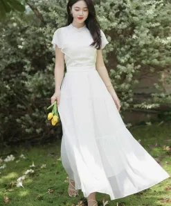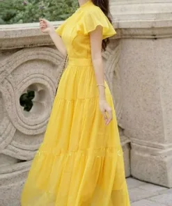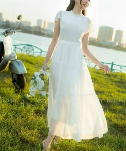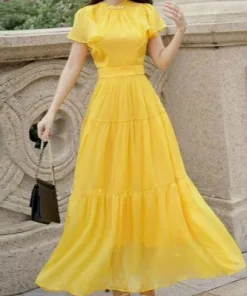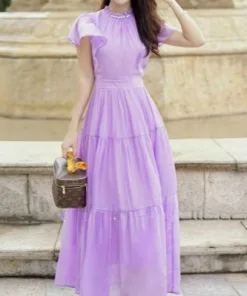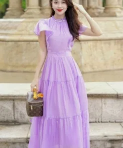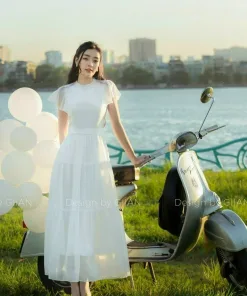 Tên sản phẩm: ĐẦM NỮ CỔ TRÒN TAY BÈO DÁNG MAXI XÒE CHẤT VOAN CHINGFON 2 LỚP V555