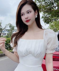 Tên sản phẩm: ĐẦM NỮ CỔ VUÔNG TAY PHỒNG DÁNG XÒE DÀI CHẤT VOAN CHINFON M470