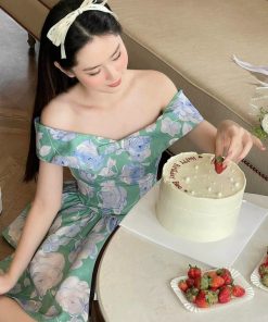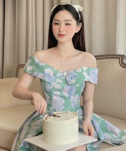 Tên sản phẩm: ĐẦM NỮ KIỂU TRỄ VAI IN HOA 3D CÓ MÚT CÓ LÓT CHẤT COTTON LẠNH T768