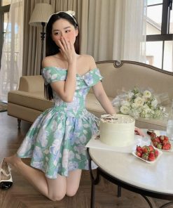 Tên sản phẩm: ĐẦM NỮ KIỂU TRỄ VAI IN HOA 3D CÓ MÚT CÓ LÓT CHẤT COTTON LẠNH T768