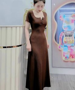 ĐẦM ÔM BODY TAY NGẮN DÁNG DÀI XÒE CHẤT THUN GÂN DD670 – NANA FREESIZE < 58KG
