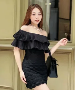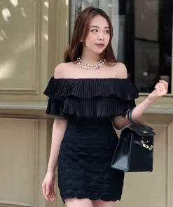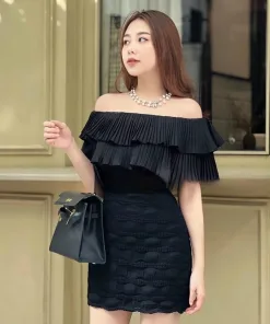Tên sản phẩm: ĐẦM NỮ ÔM BODY XỐP PHỒNG CÚP NGỰC PHỐI BÈO DẬP LY CÓ MÚT NGỰC T552