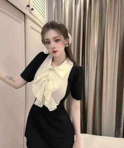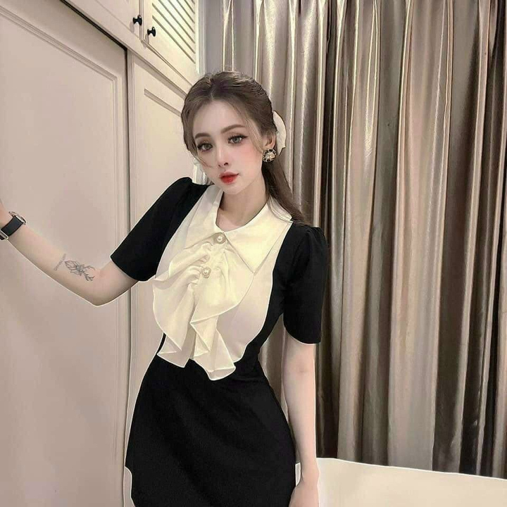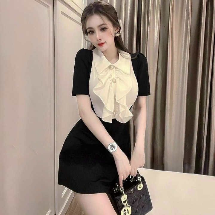 Tên sản phẩm: Đầm phối cổ xếp bèo có đính cườm V178 – CLOUDY DRESS