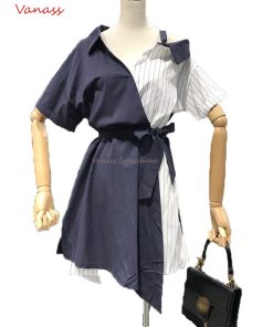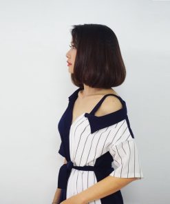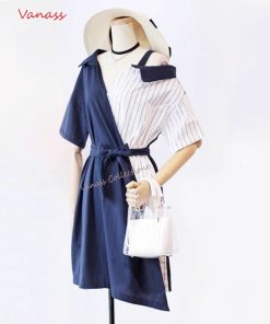 - Tên sản phẩm: Đầm Phối Sọc Thắt Nơ Eo Phối Xanh – Vanass