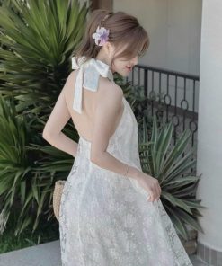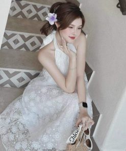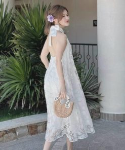 ĐẦM REN HOA THÊU CỘT NƠ CỔ YẾM BH110K- SAM FREESIZE < 55KG