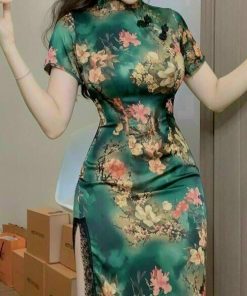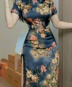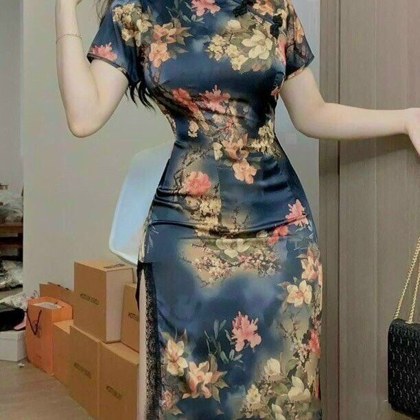Tên sản phẩm: Đầm sườn xám hoa nút mây tôn dáng chất thun dẻo in 3D V176 – CLOUDY DRESS