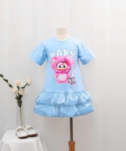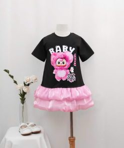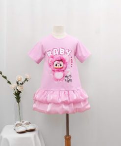 1. Tên sản phẩm : Đầm Suông Thun Chính Phẩm Phối 2 Tùng Bí In Babythree Hottrend Bé Gái Từ 12-50kg Cho Bé Gái