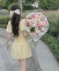 ĐẦM TAY PHỒNG GẮN NƠ MOCKING 2 THÂN BH9 5U- NANA FREESIZE < 53KG