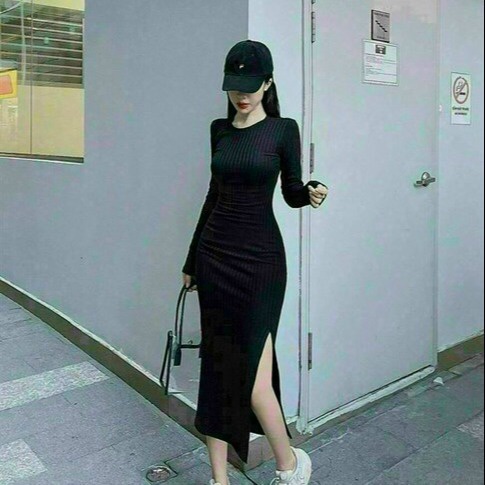 Tên sản phẩm: ĐẦM THUN BODY ÔM EO XẺ TÀ TAY DÀI SEXY V110 – CLOUDY DRESS