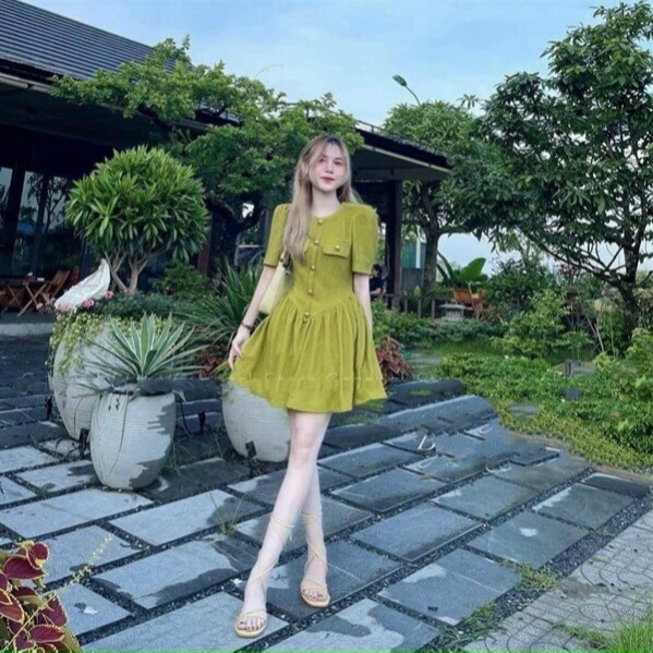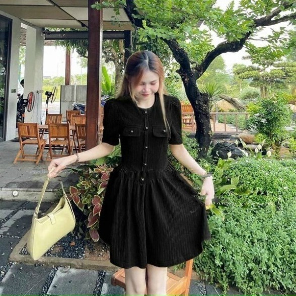 Tên sản phẩm: đầm thun gân dáng xòe tiểu thư V272 – CLOUDY DRESS
