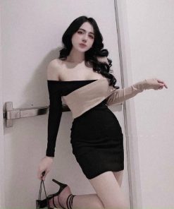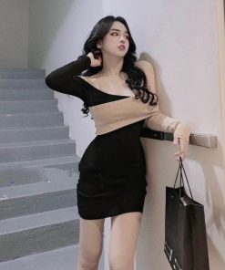 Tên sản phẩm: đầm thun ôm body tay dài kiểu V235 – CLOUDY DRESS